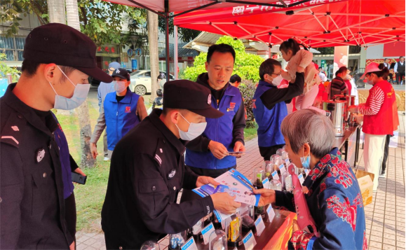 活動(dòng)現(xiàn)場,黨員和志愿者們精神飽滿,分工協(xié)作,互相配合,搭建起禁毒宣傳、垃圾分類、便民理發(fā)、健康檢查等展位,為轄區(qū)居民提供各類便民服務(wù)。